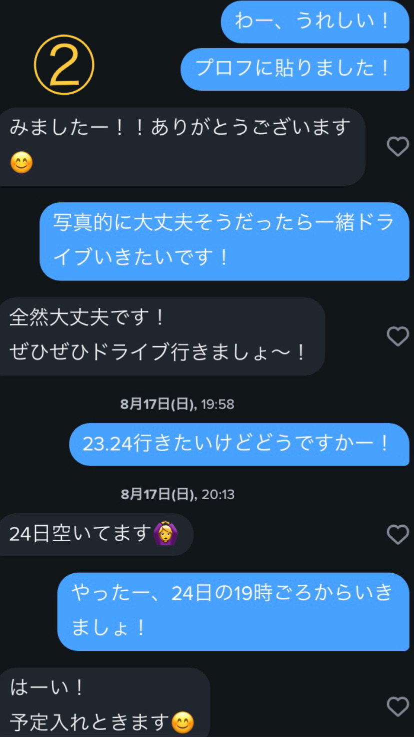 アポが取れたら、メッセージはだらだら続けないのが重要です。顔も声も分からない状態での会話では関係性の向上が見込めないからです。